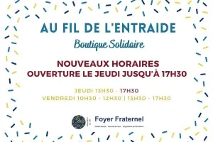 Notez la date de la prochaine vente d’entraide qui aura lieu le samedi 5 avril, puis celle de la braderie le 14 juin.